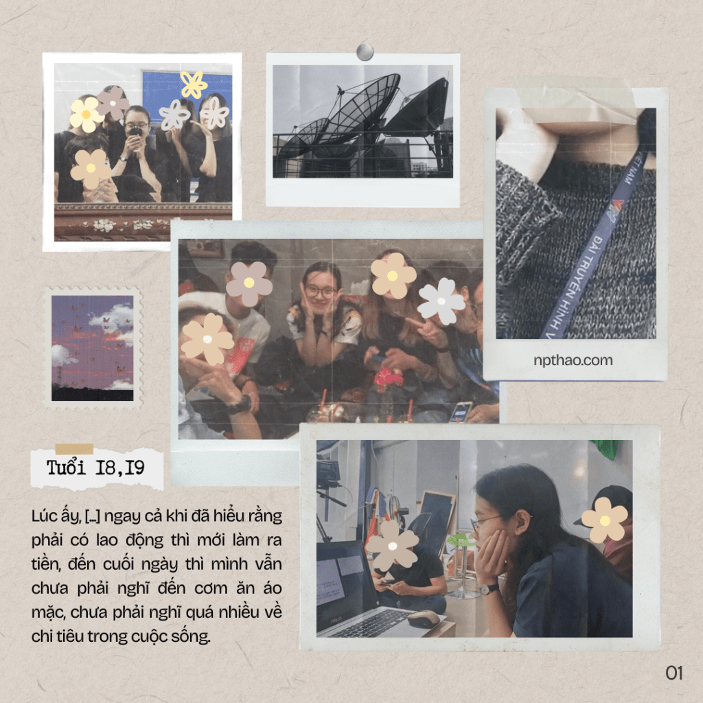Hai công việc này đi liền với nhau vì đây là khoảng thời gian mình ra ngoài lăn xả làm việc nhưng chưa hề có gánh nặng về tiền. Mình mới ra khỏi trường cấp ba và vẫn có mẹ lo cho từng cái ăn cái mặc. Lúc ấy, cảm giác tiền thù lao chỉ là khoản bonus/tiền thưởng mà mình có thì tuyệt, mà không có thì cũng không quá quan trọng vì điều mình muốn nhất là trải nghiệm thì mình đã có rồi. Dù ngay cả khi đã hiểu rằng phải có lao động thì mới làm ra tiền, đến cuối ngày thì mình vẫn chưa phải nghĩ đến cơm ăn áo mặc, chưa phải nghĩ quá nhiều về chi tiêu trong cuộc sống.