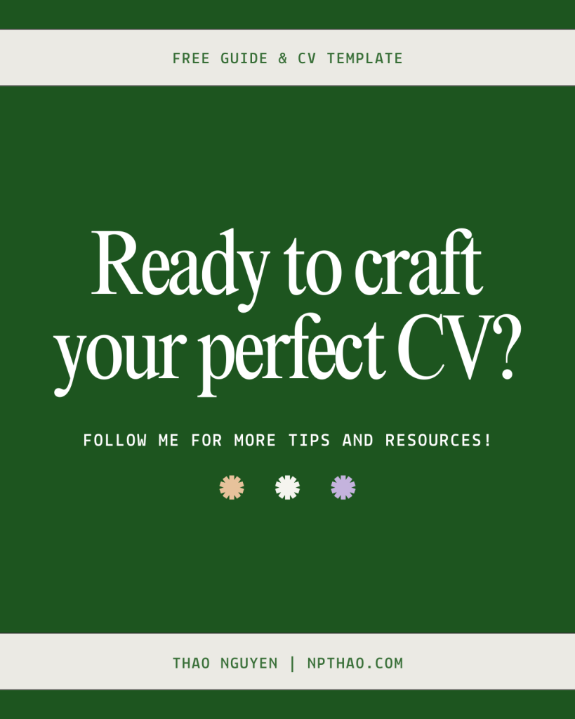 Hi, I’m Nguyen Phuong Thao, and I created a CV template to help you confidently craft your own. Landing a job isn’t just about your skills and competency – it’s also about how you present yourself on that single A4 page.