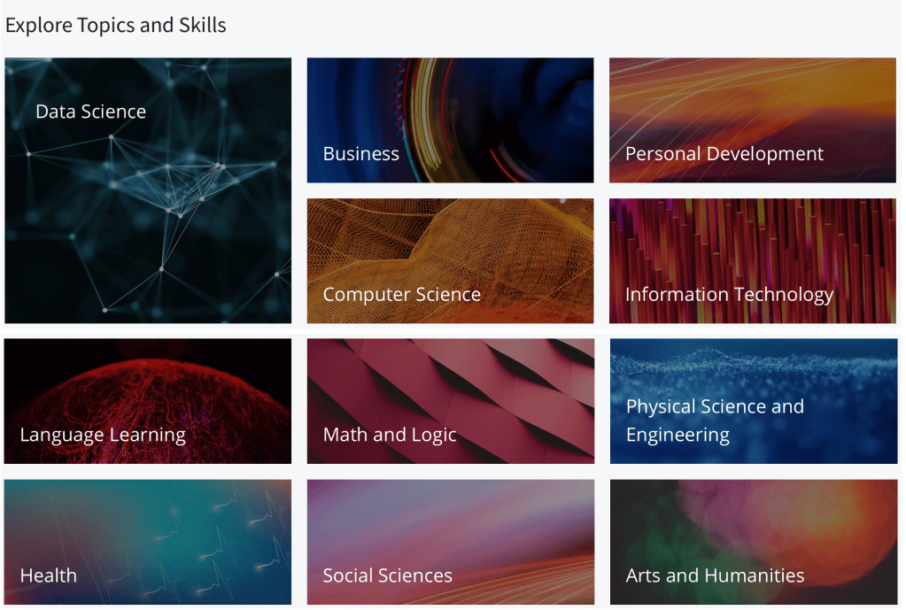 1. Đây là một trong những nền tảng học trực tuyến uy tín nhất, nhiều người biết đến. Các khoá học được xây dựng và giảng dạy với sự hợp tác của các giảng viên, các trường đại học và công ty hàng đầu thế giới. Ví dụ như Google, Microsoft, Stanford University,…